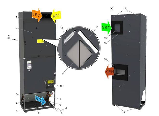 | Typ | SA-V | Urządzenie systemu wentylacji zdecentralizowanej do montażu pionowego X-CUBE/SCHOOLAIR-V |